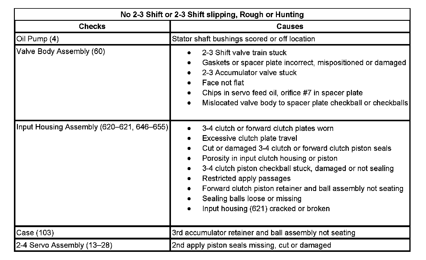 No 2-3 Shift or 2-3 Shift Slips. Rough or Hunting