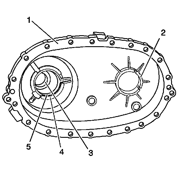 5. Inspect the front output shaft front bearing bore (5) for the following conditions: