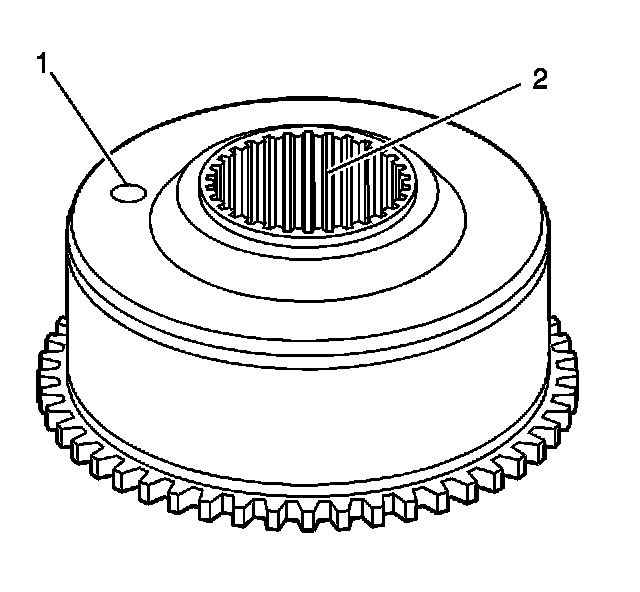 3. Inspect the front output internal splines and driven gear splines for damage or excessive wear.