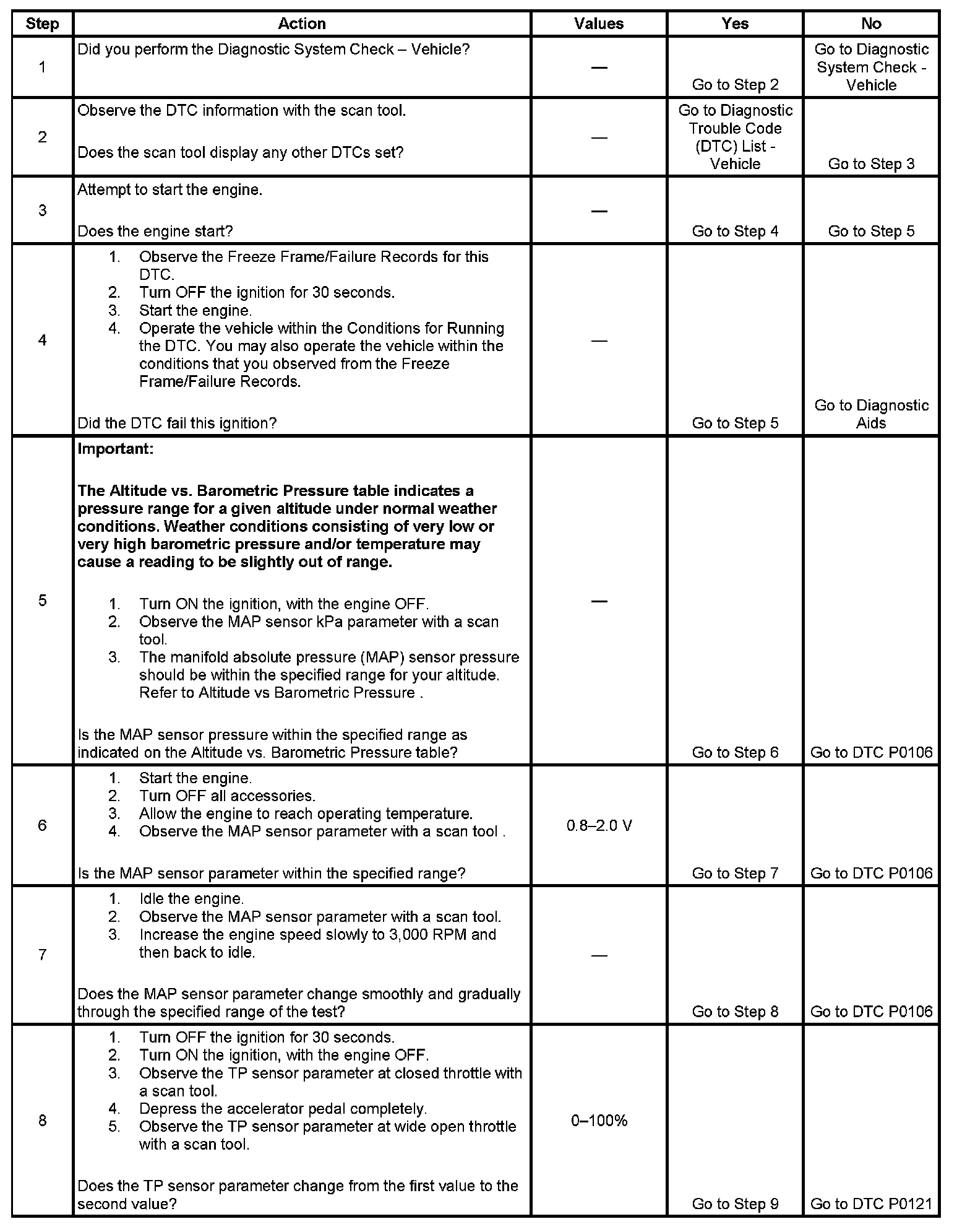 5. This step will determine if the MAP sensor pressure is within the proper range for a given altitude.