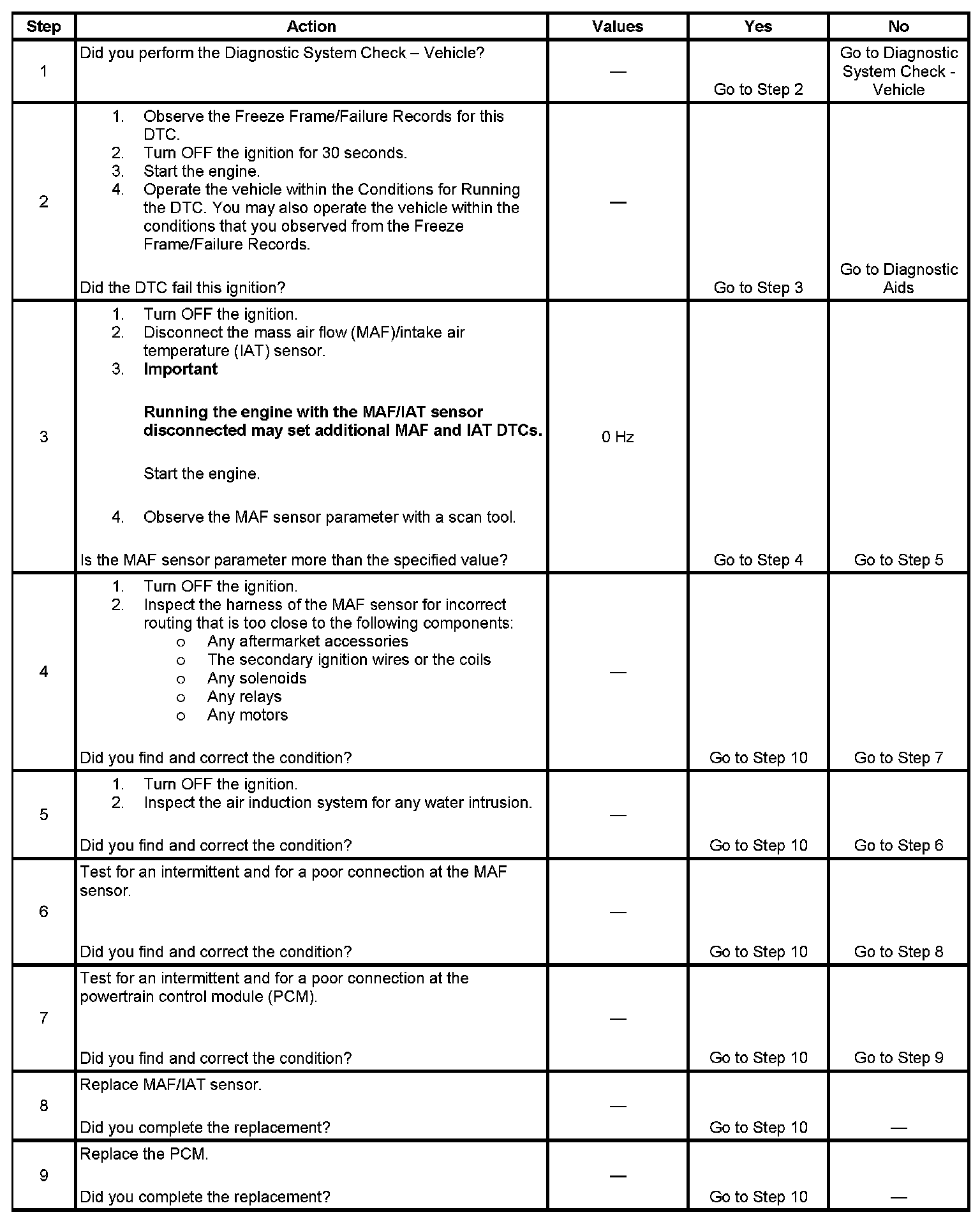 - Inspect the air induction system for any water intrusion. The water rapidly cools the hot sensing elements in the sensor, causing a false indication of excessive air flow. Any water that reaches the MAF sensor will skew the sensor, and may cause this DTC to set.