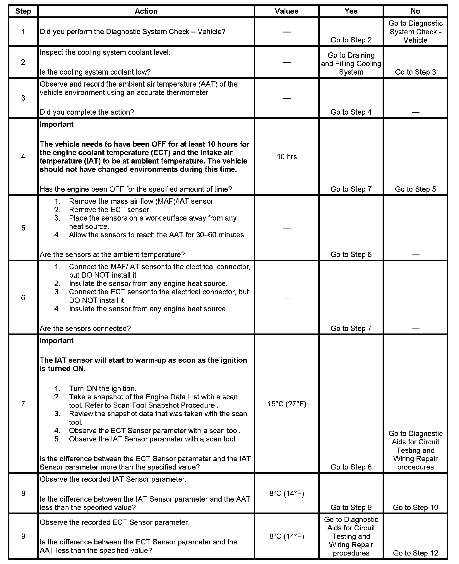 - The IAT Sensor parameter is more than -7°C (20°F).