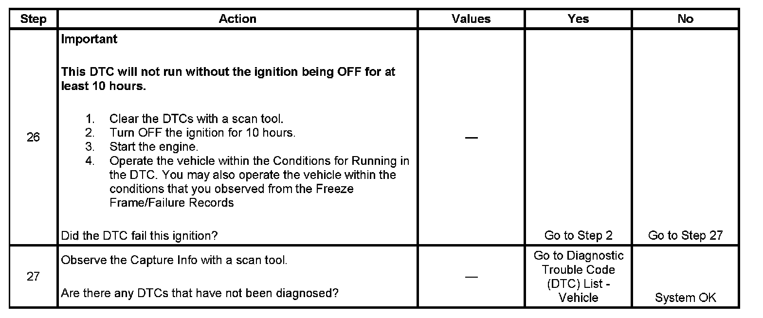 - A current DTC, Last Test Failed, clears when the diagnostic runs and passes.