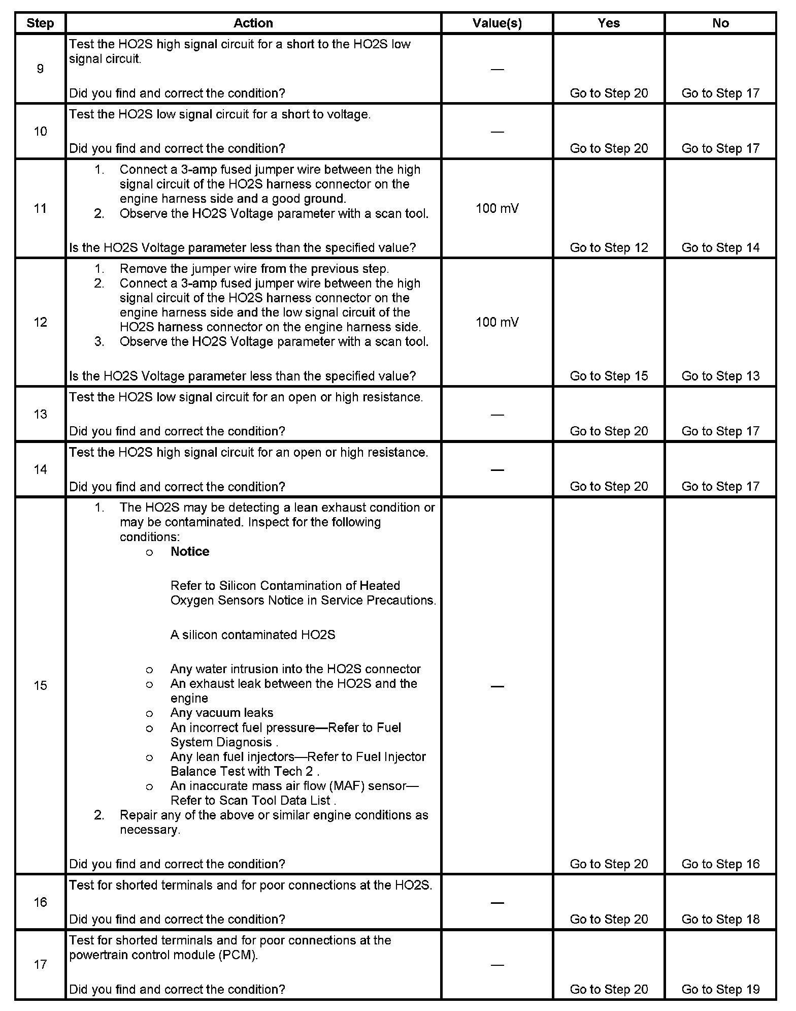 2. If the voltage does not change more than the specified value, the condition is present.