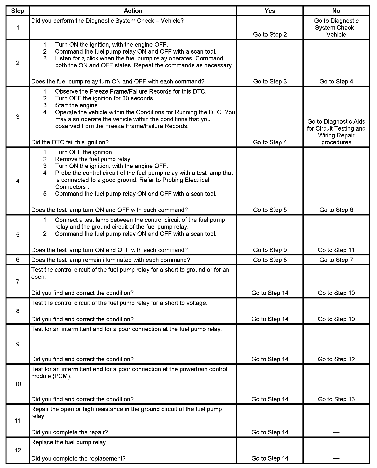 DTC P0230 Fuel Pump Relay Control Circuit