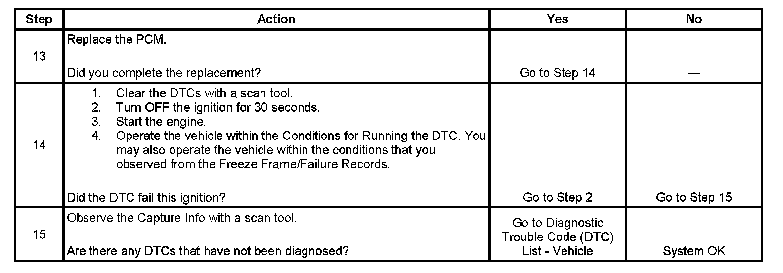 - A current DTC, Last Test Failed, clears when the diagnostic runs and passes.