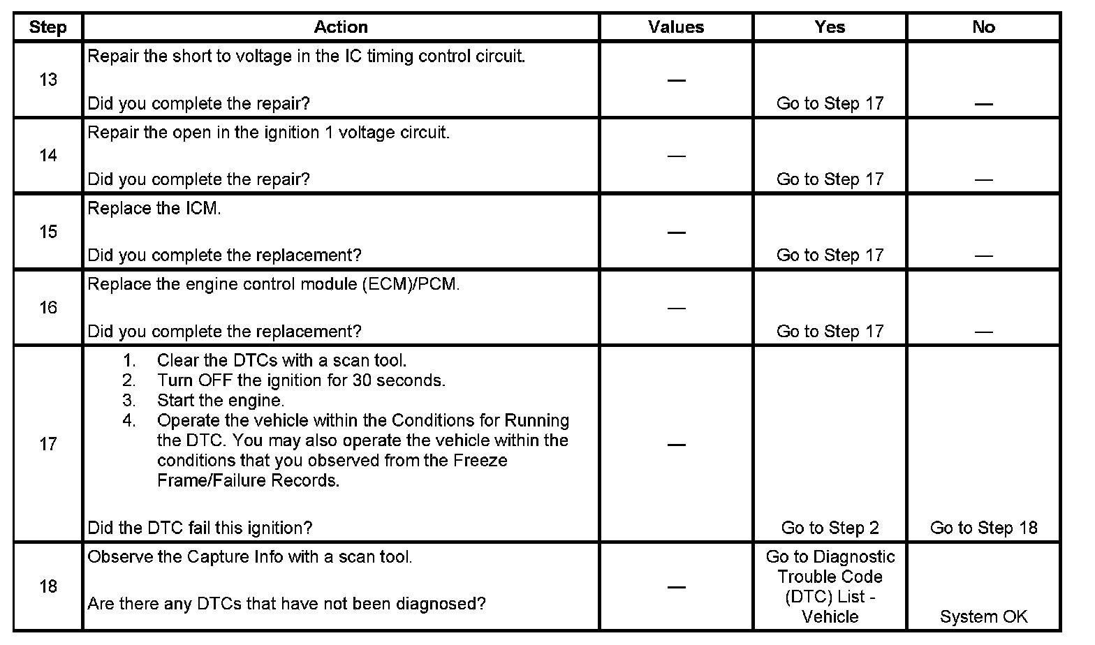 The numbers below refer to the step numbers on the diagnostic table.