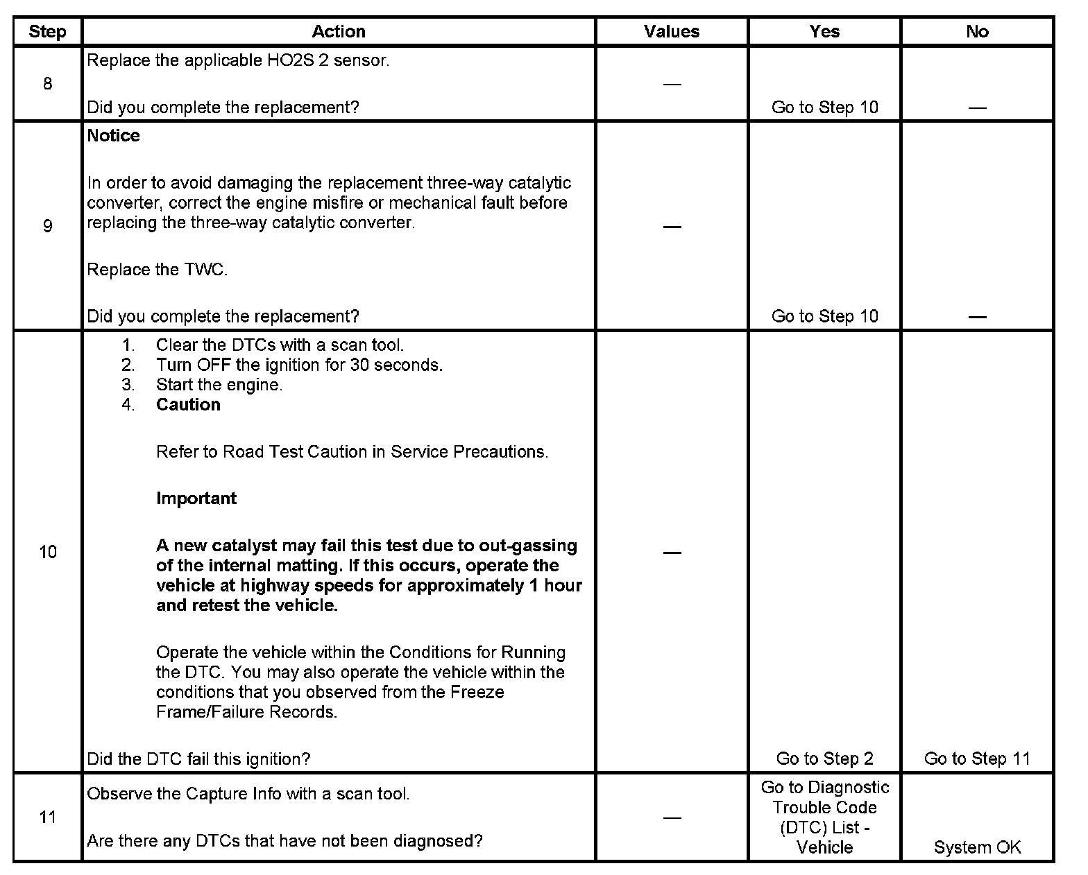 6. This step inspects for conditions that can cause the TWC efficiency to appear degraded.