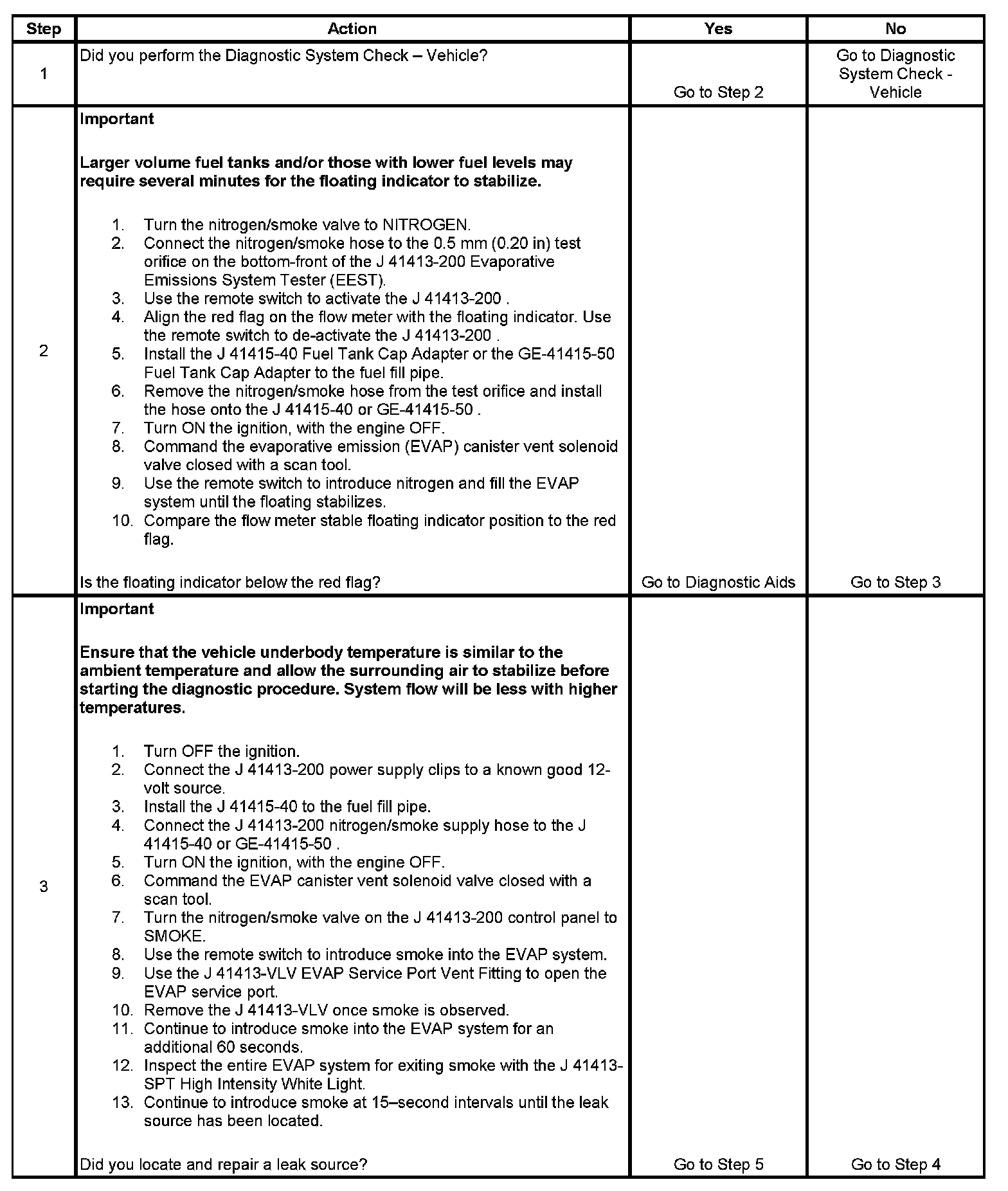- To help locate intermittent leaks, use the J 41413-200 Evaporative Emissions System Tester (EEST) to introduce smoke into the EVAP system. Move all EVAP components while observing smoke with the J 41413-SPT High Intensity White Light.