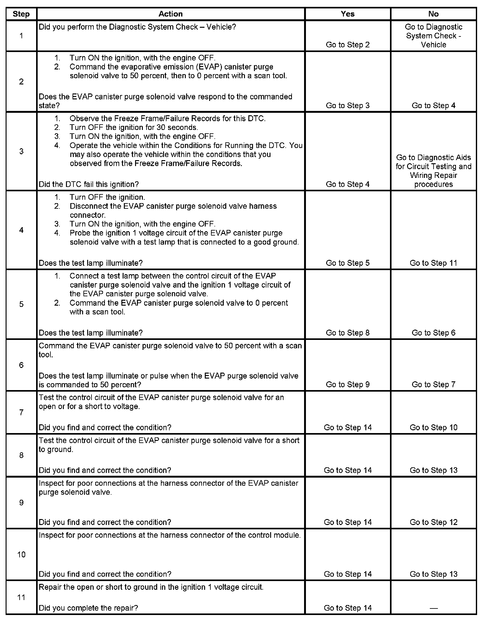 6. This step tests if a ground is constantly being applied to the EVAP canister purge solenoid valve.