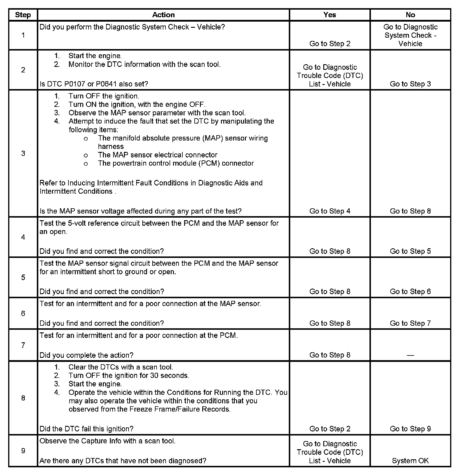 DTC P1107 Manifold Absolute Pressure (MAP) Sensor Circuit Intermittent Low Voltage