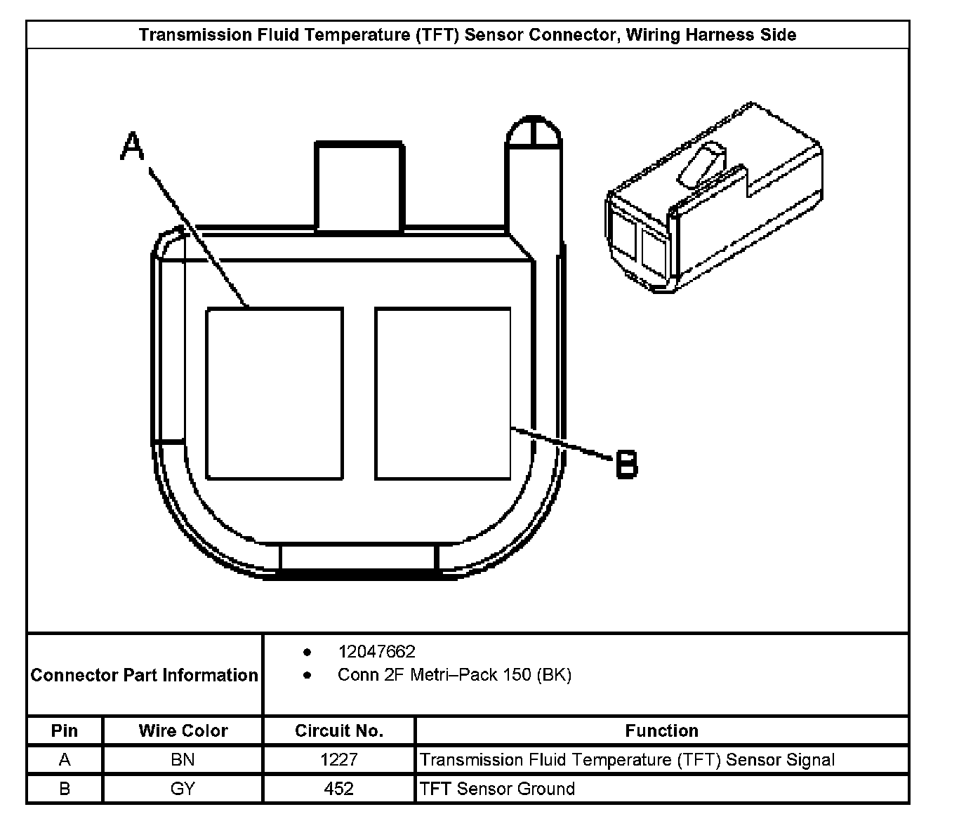 Transmission Fluid Temperature (TFT) Sensor Connector, Wiring Harness Side: