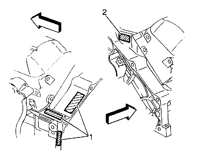 Engine Identification^ The Vehicle Identification Number (VIN) Derivative is located on the left side rear of the engine block (1) or on the right side rear (2) and typically is a nine digit number stamped or laser etched onto the engine at the vehicle assembly plant.