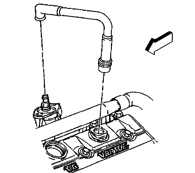 3. Remove the positive crankcase ventilation (PCV) valve and hose assembly from the valve rocker arm cover and the intake manifold.