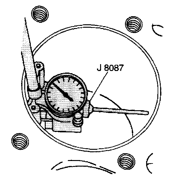 10.2. Center the J 8087 in the cylinder bore and turn the indicator dial to 0.