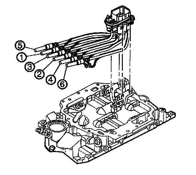 4. Install the 6 injectors into the proper lower intake manifold bores in proper sequence (3, 5, 1, 2, 4, 6).