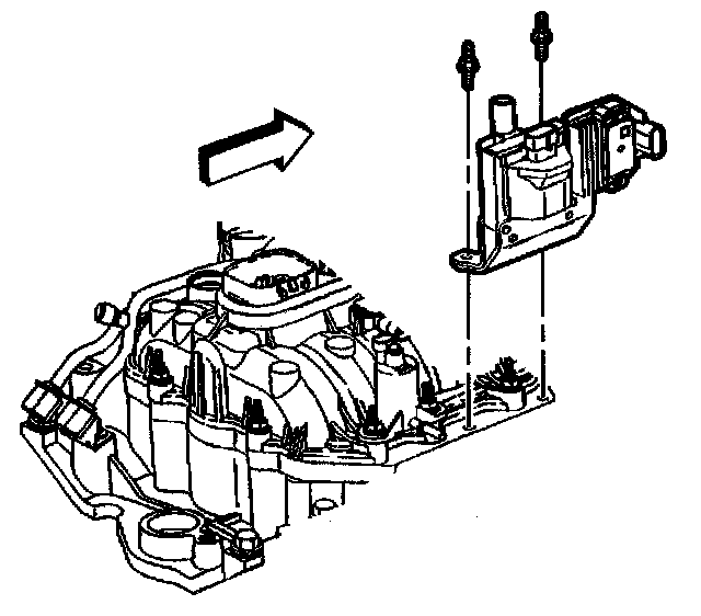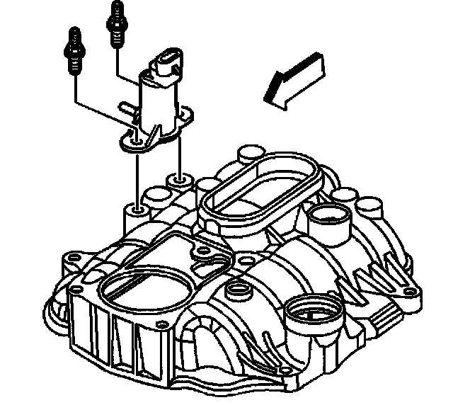11. If reusing the fasteners, apply threadlock GM P/N 12345382 (Canadian P/N 10953489) or equivalent, to the threads of the evaporative emission (EVAP) canister purge solenoid valve studs.