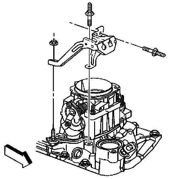 36. Install the accelerator control cable bracket, the studs, and the nuts.