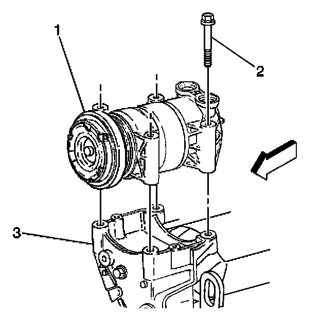 2. Install the compressor retaining bolts to the mounting bracket.