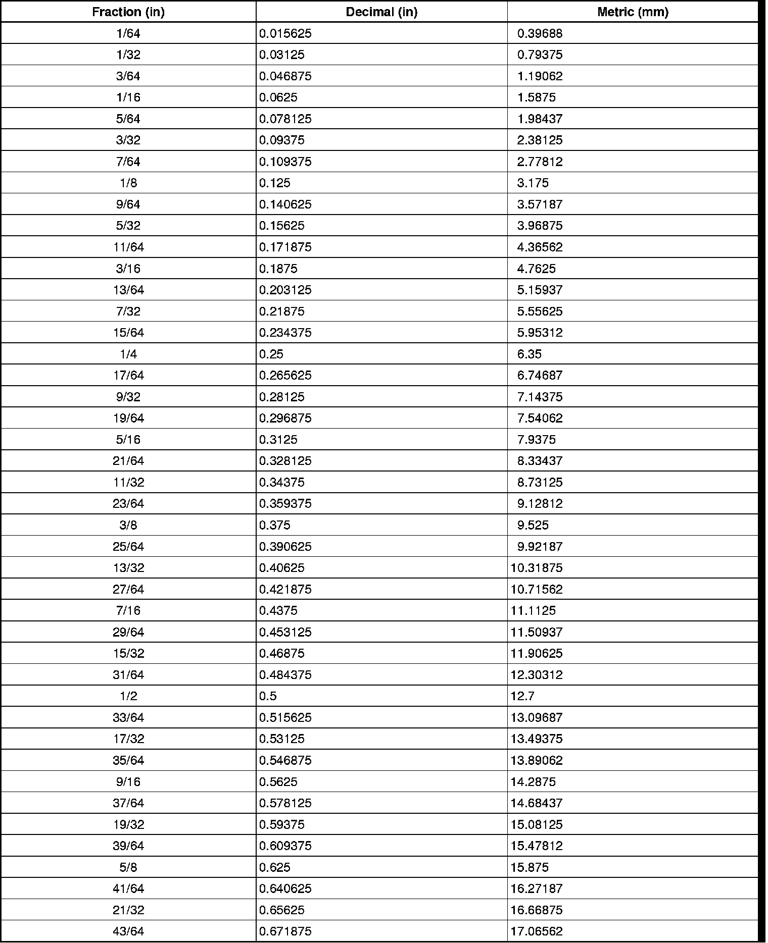 Equivalents - Decimal and Metric