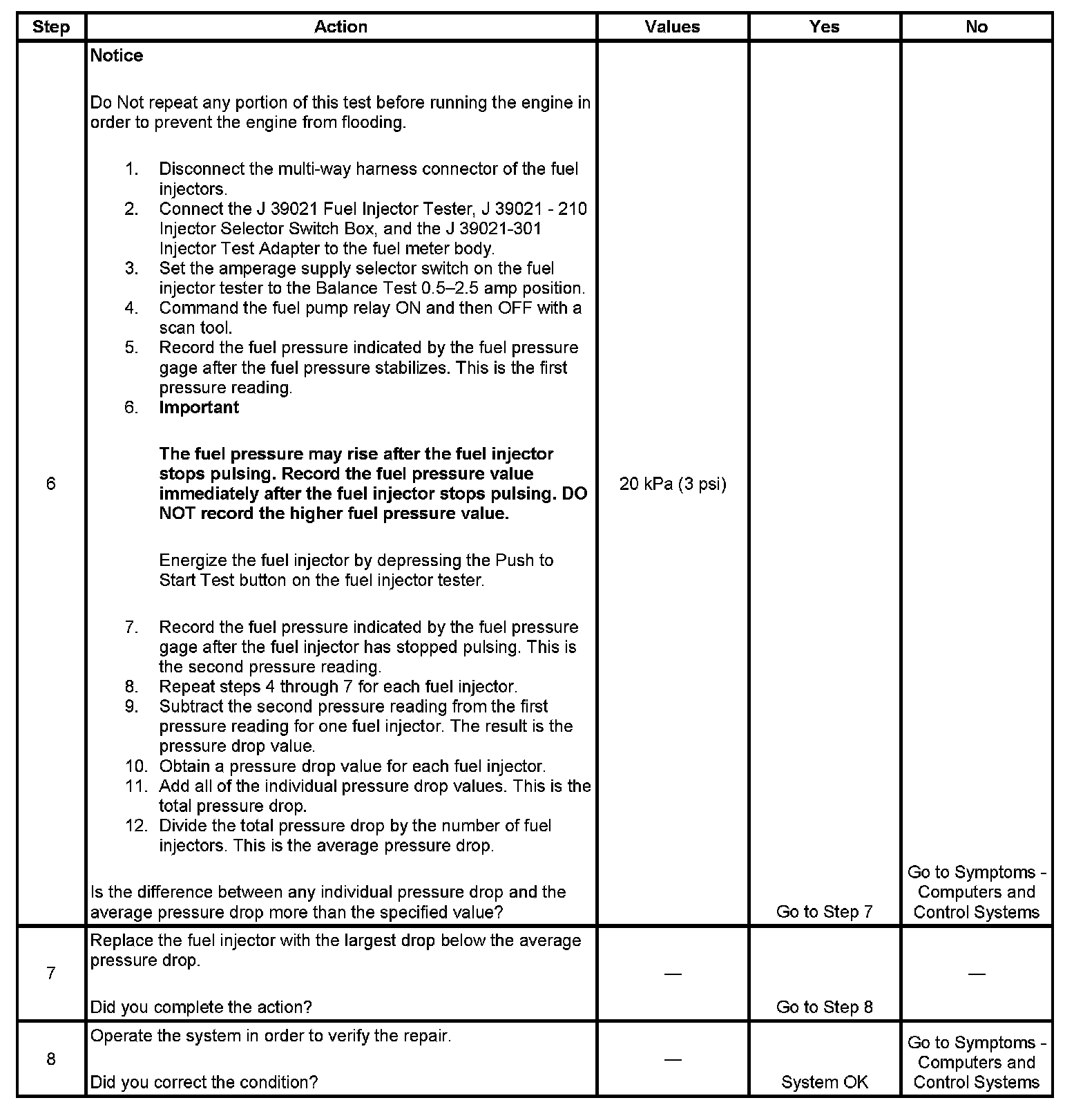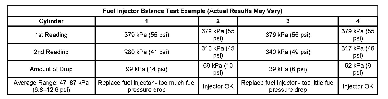 Fuel Injector Balance Test Example (Actual Results May Vary):