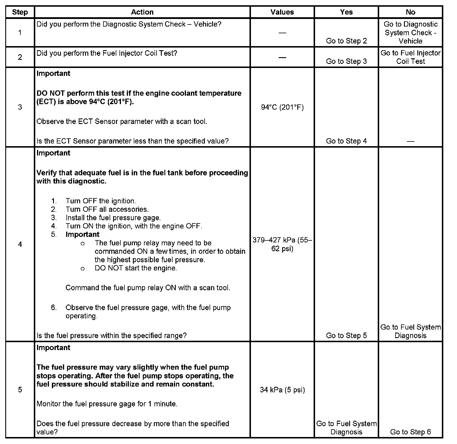 3. The engine coolant temperature (ECT) must be below the operating temperature in order to avoid irregular fuel pressure readings due to hot soak fuel boiling.