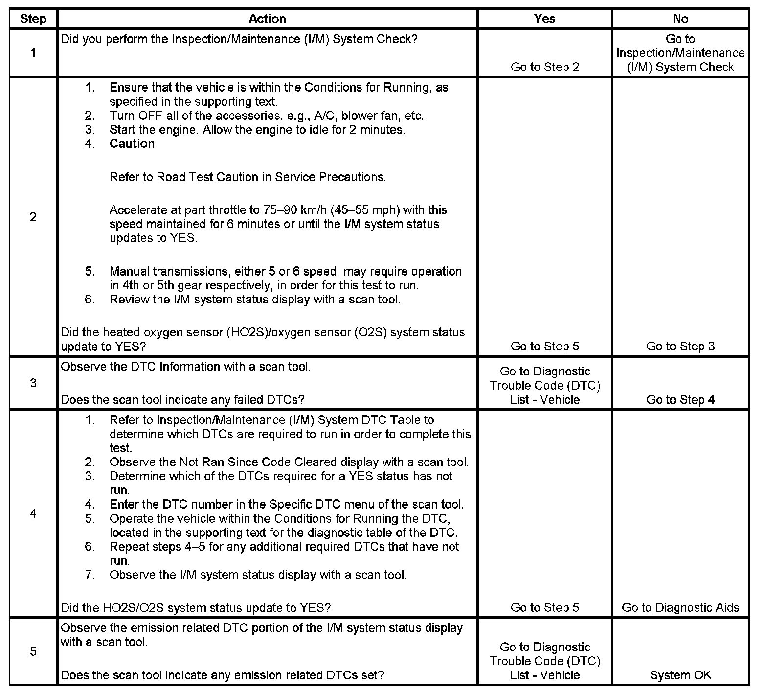The purpose of this test is to satisfy the enable criteria necessary to execute inspection/maintenance (I/M) readiness diagnostics for the heated oxygen sensor (HO2S)/oxygen sensor (O2S) system. The test may be used to set the I/M system status to YES.