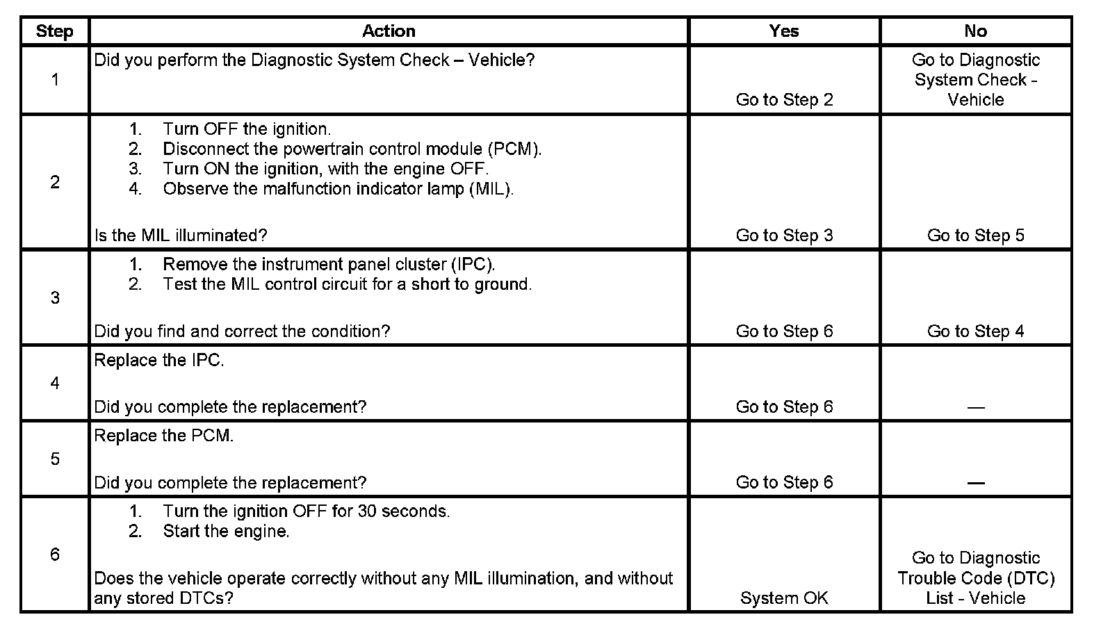 2. This step determines if the condition is with the MIL control circuit or the PCM.