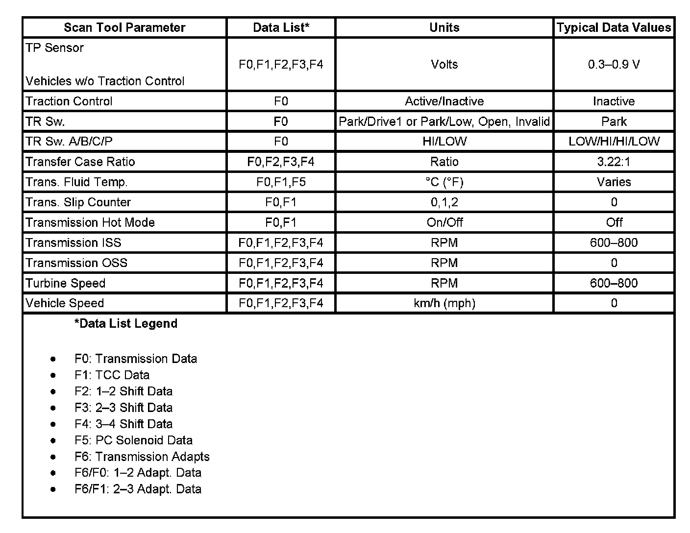 Only the parameters listed below are used in this manual for diagnosing. If a scan tool displays other parameters, the values are not recommended by General Motors for use in diagnosis.