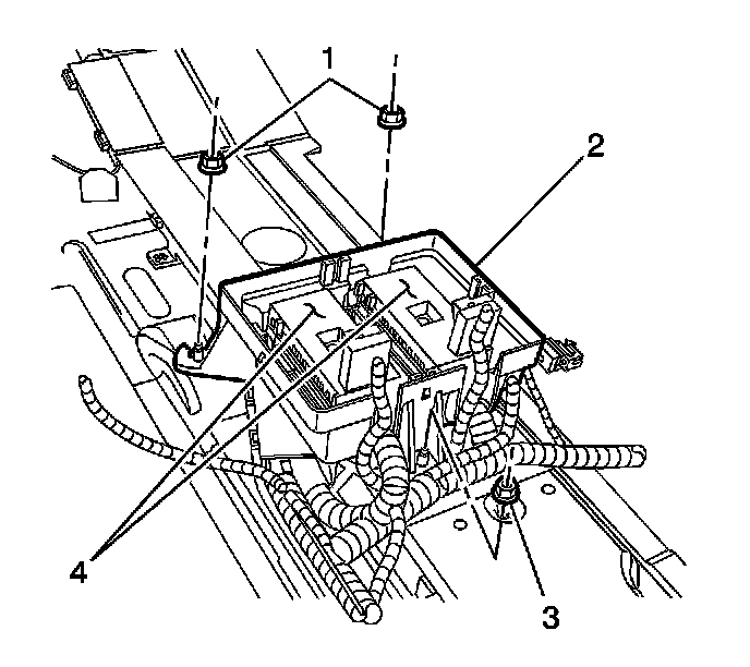 12. Remove the junction block base (4) from the floor.