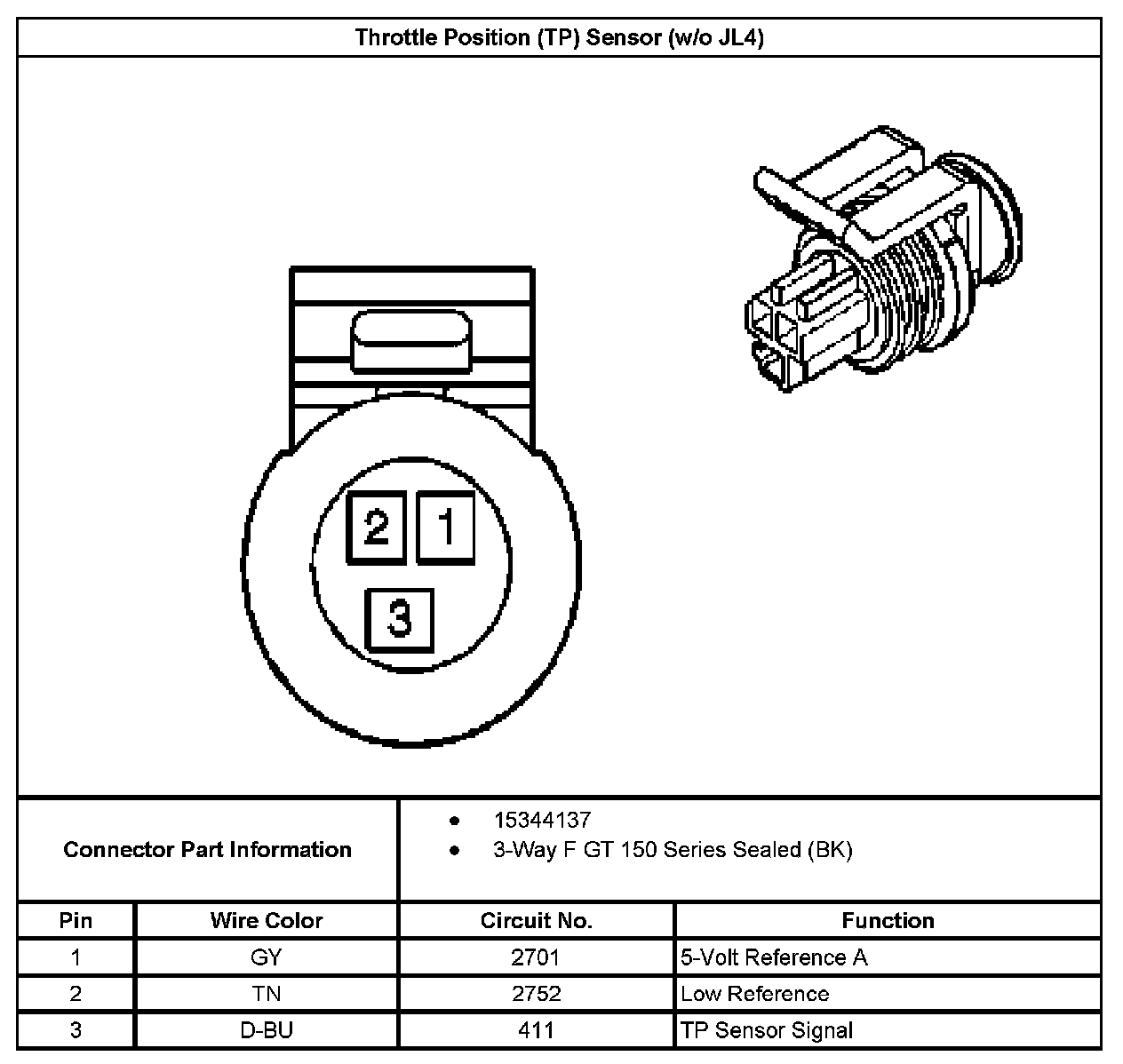 Throttle Position (TP) Sensor (Without RPO Code JL4):