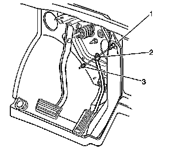 4. Seat the retainer (3) in the accelerator pedal lever (2).