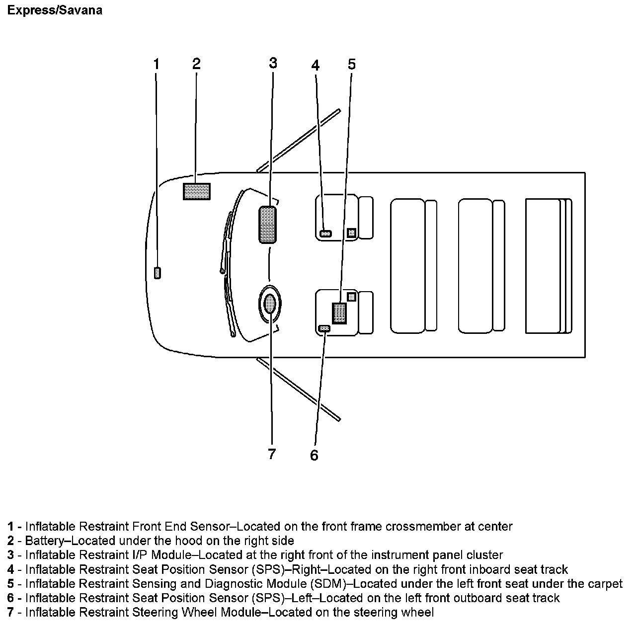 The SIR Zone Identification Views shown, illustrate the approximate location of all SIR components available for the vehicle. This will assist in determining the appropriate SIR Disabling and Enabling Zones for a given service procedure, refer to SIR Disabling and Enabling Zones.