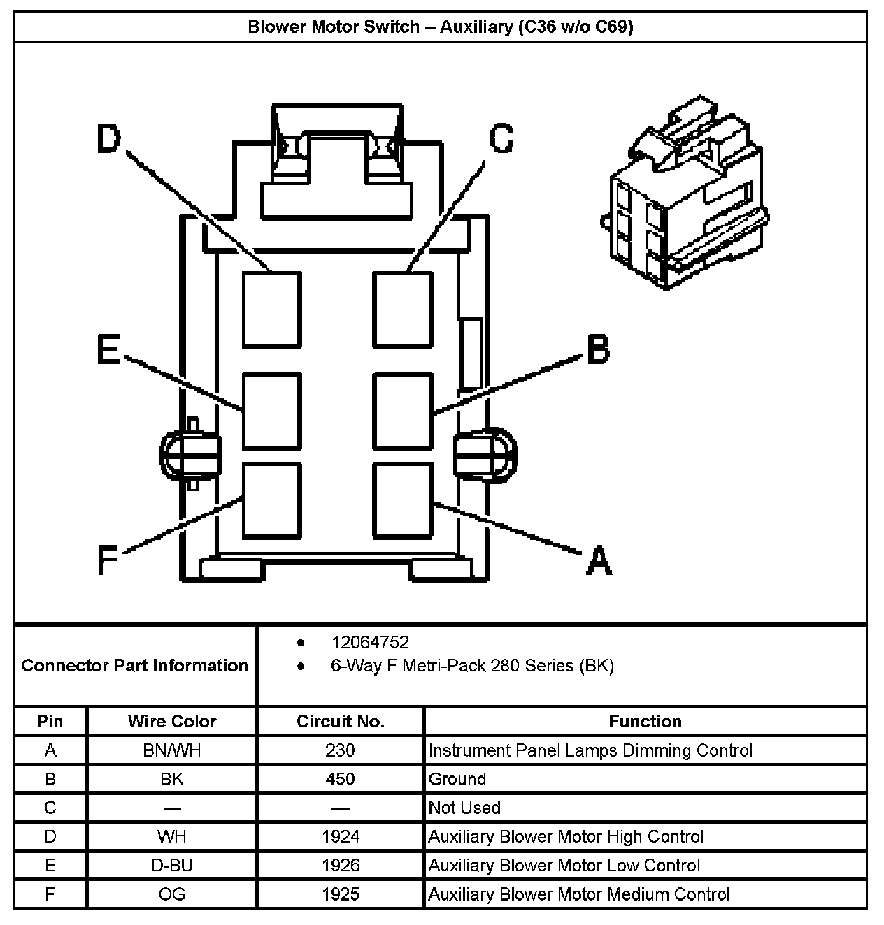 Blower Motor Switch - Auxiliary (C36 Without RPO Code C69):