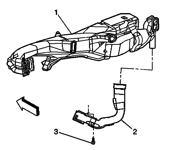 1. Remove the right floor outlet duct retaining screw (3) from the I/P support bracket.