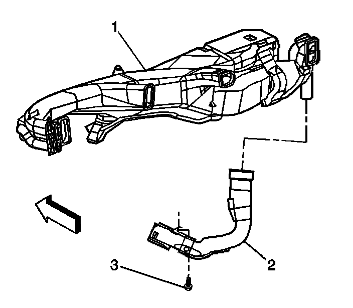 2. Install the right floor outlet duct screw (3) to the I/P support bracket.