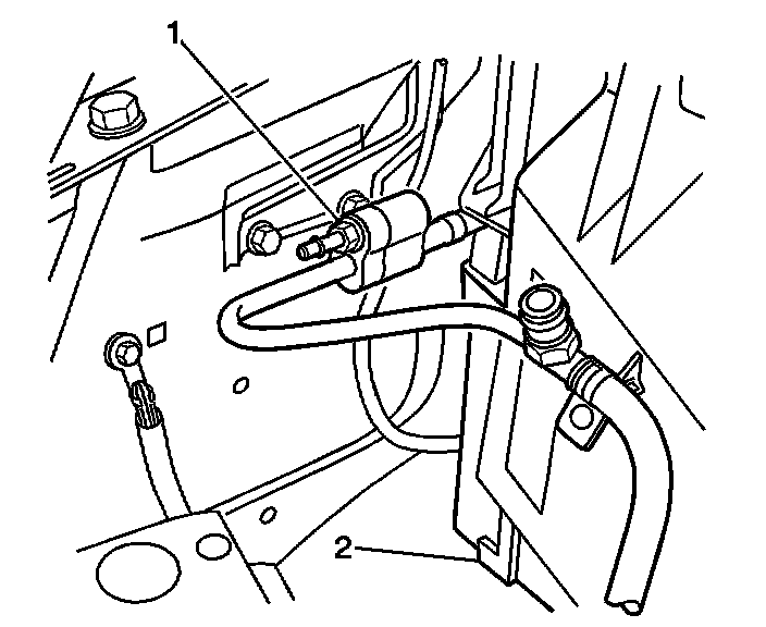 3. Remove the evaporator inlet hose nut (1) from the evaporator.