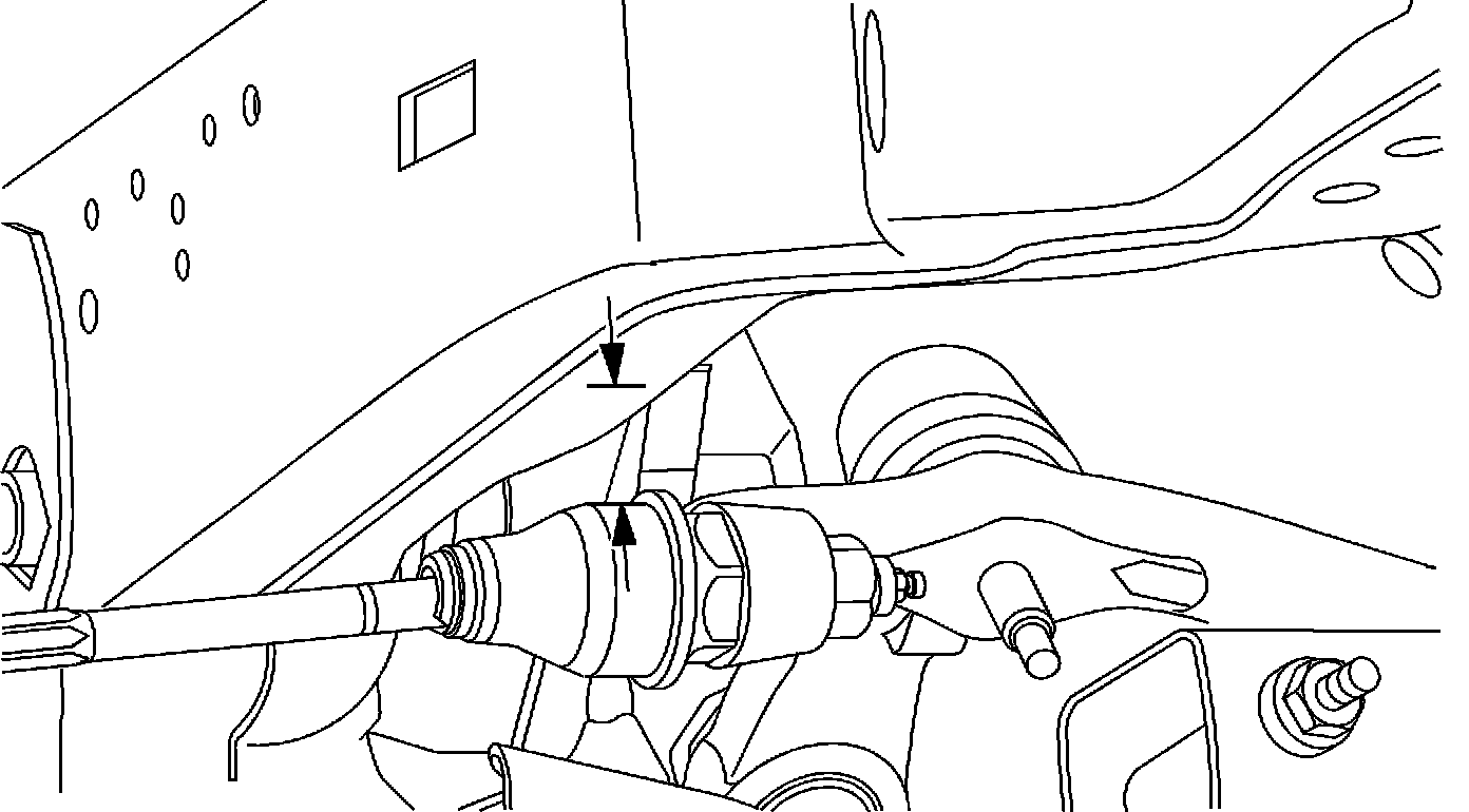 4. Turn the wheel 11 degrees to the left and the right, lining up the inner frame rail with the tie rod end boot as seen in the illustration above. Measure the distances between the inner frame rail and tie rod end. If the measurement is less than 14 mm (0.55 in), an adjustment will have to be made.