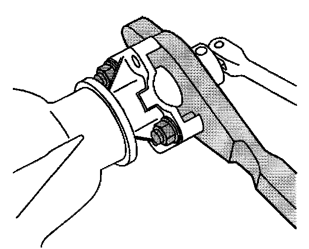 10. Install the propeller shaft yoke retaining clamps and the bolts.