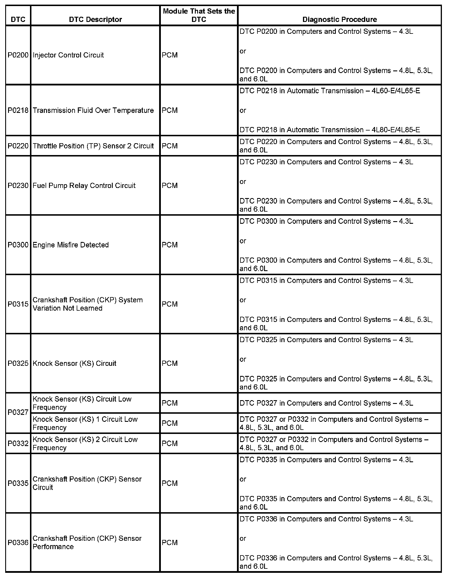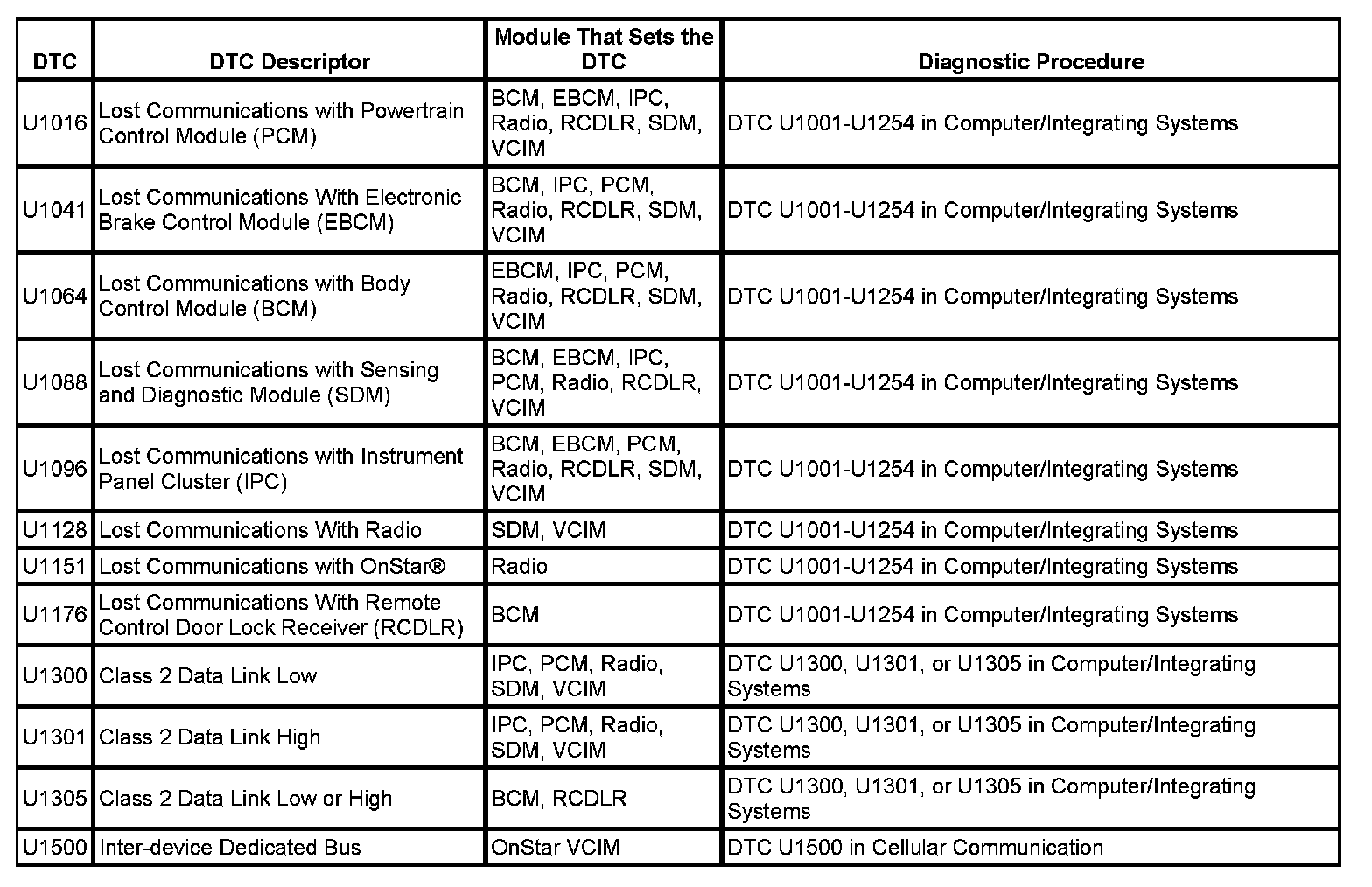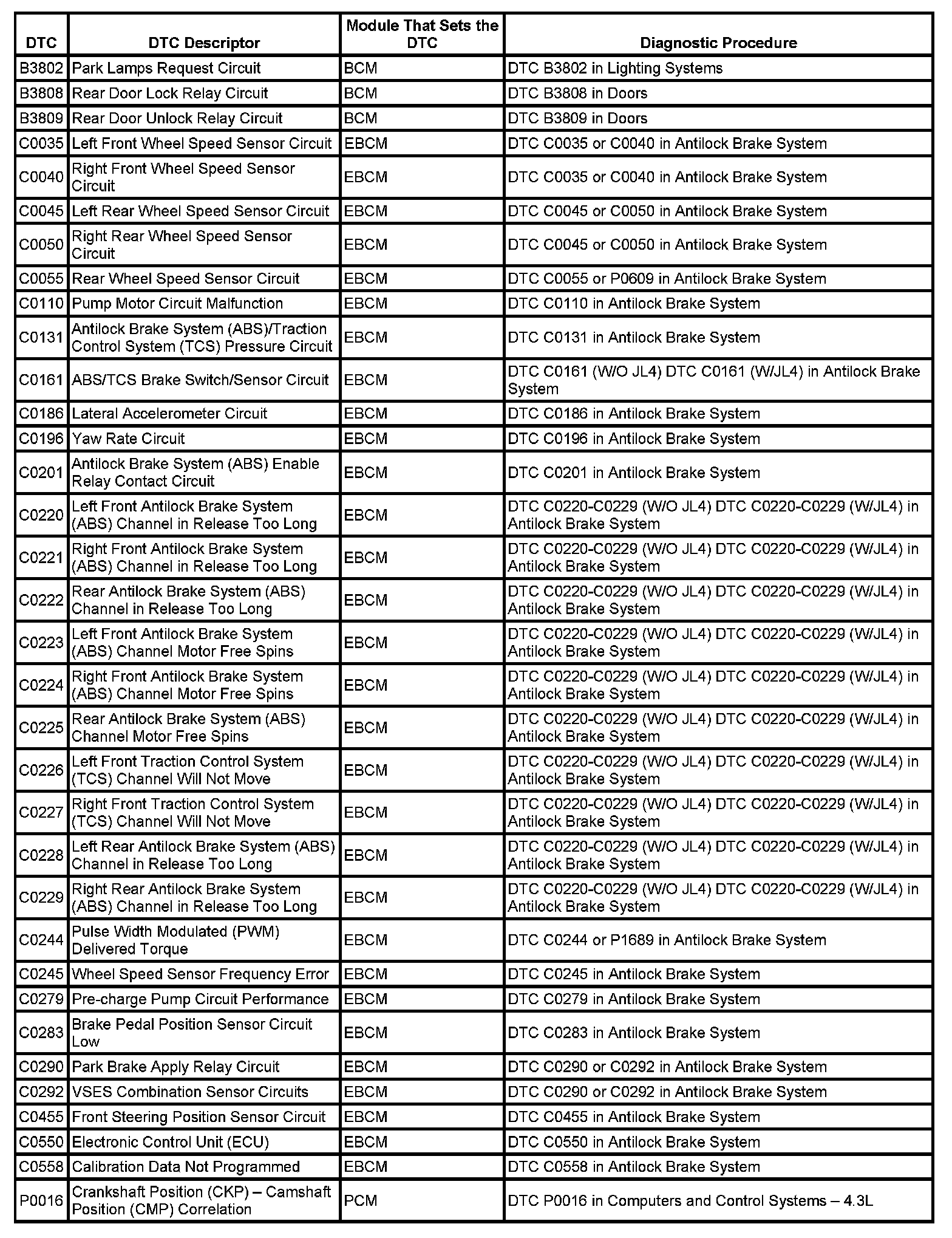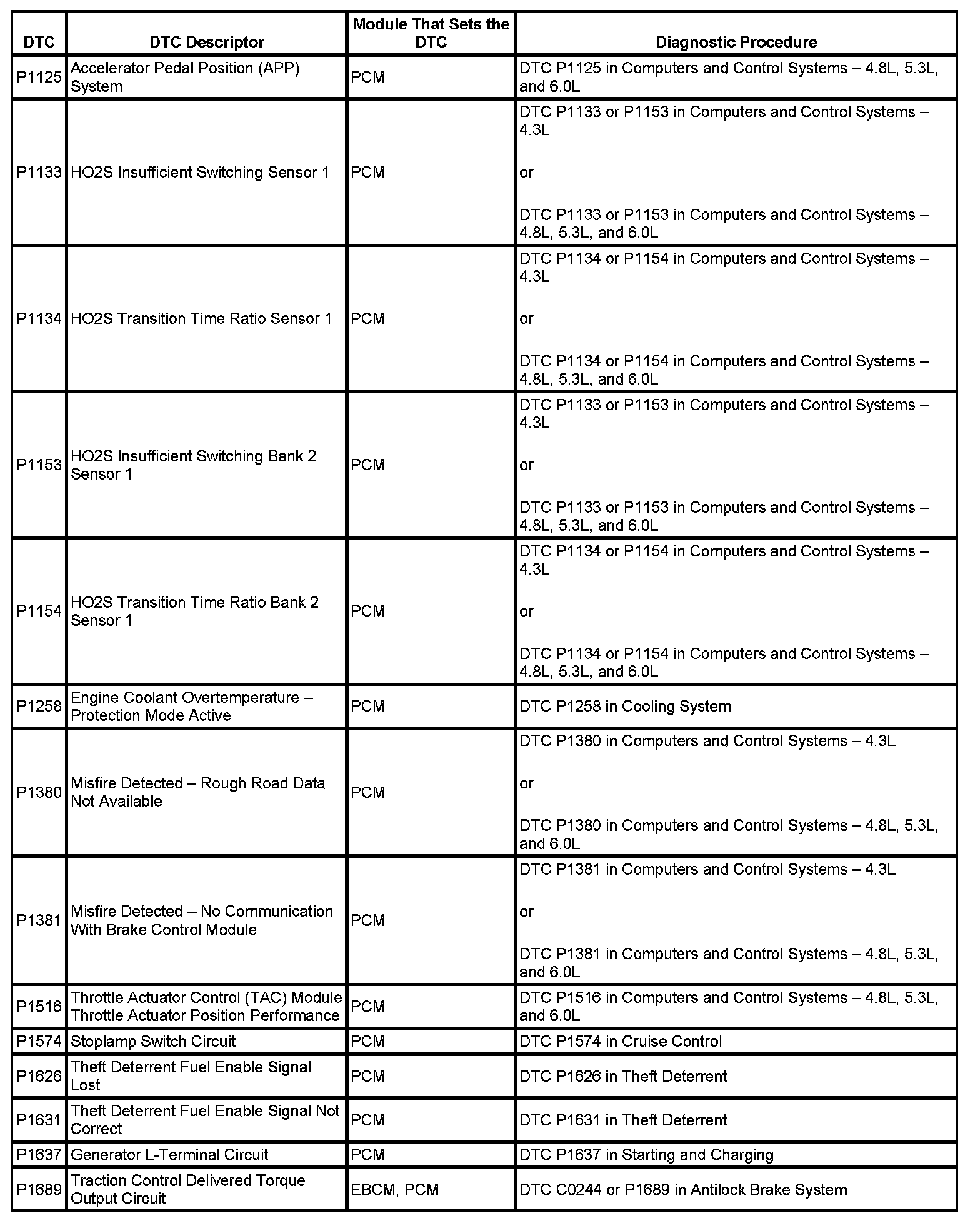 This master DTC list includes all applicable DTCs in alphanumeric order with descriptors.