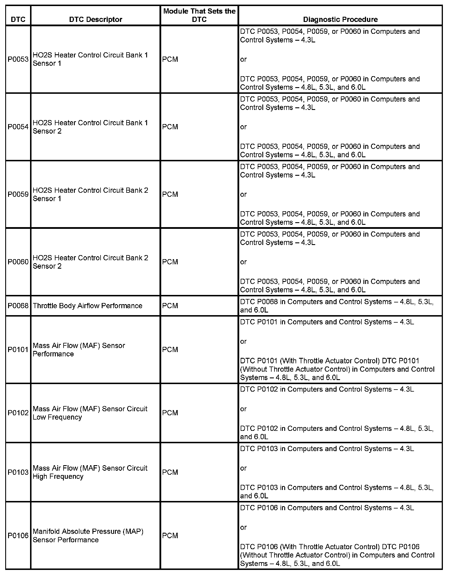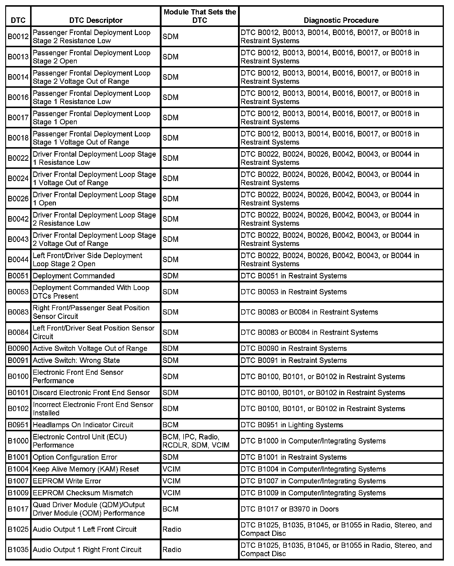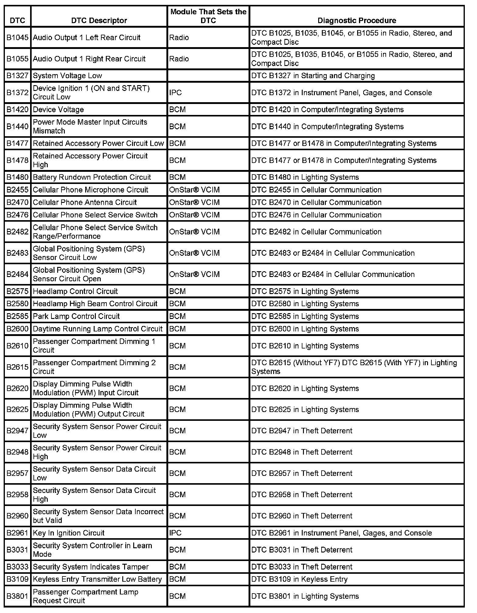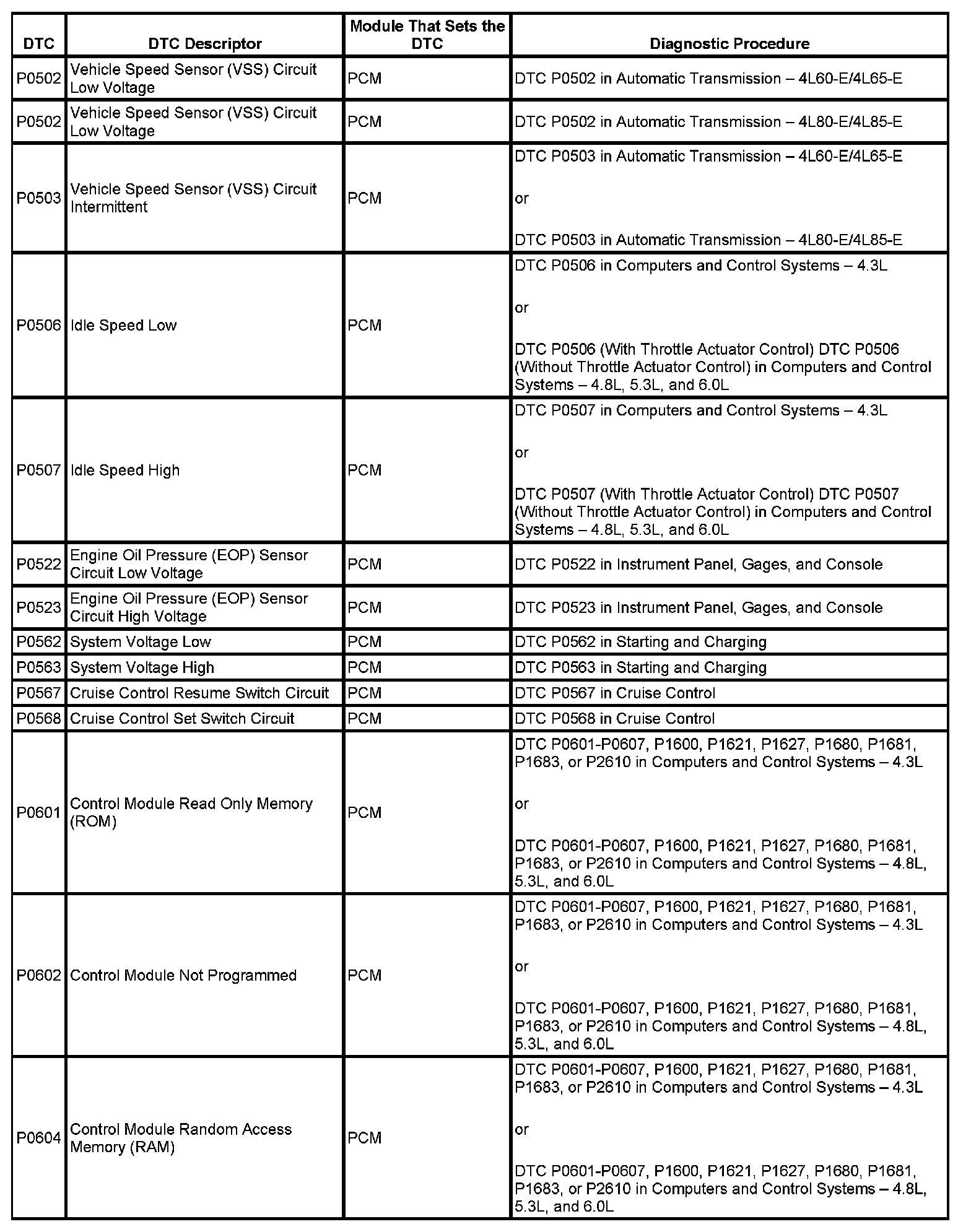 This master DTC list includes all applicable DTCs in alphanumeric order with descriptors.