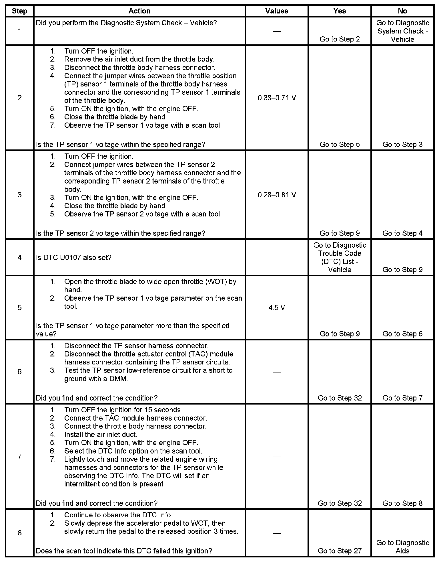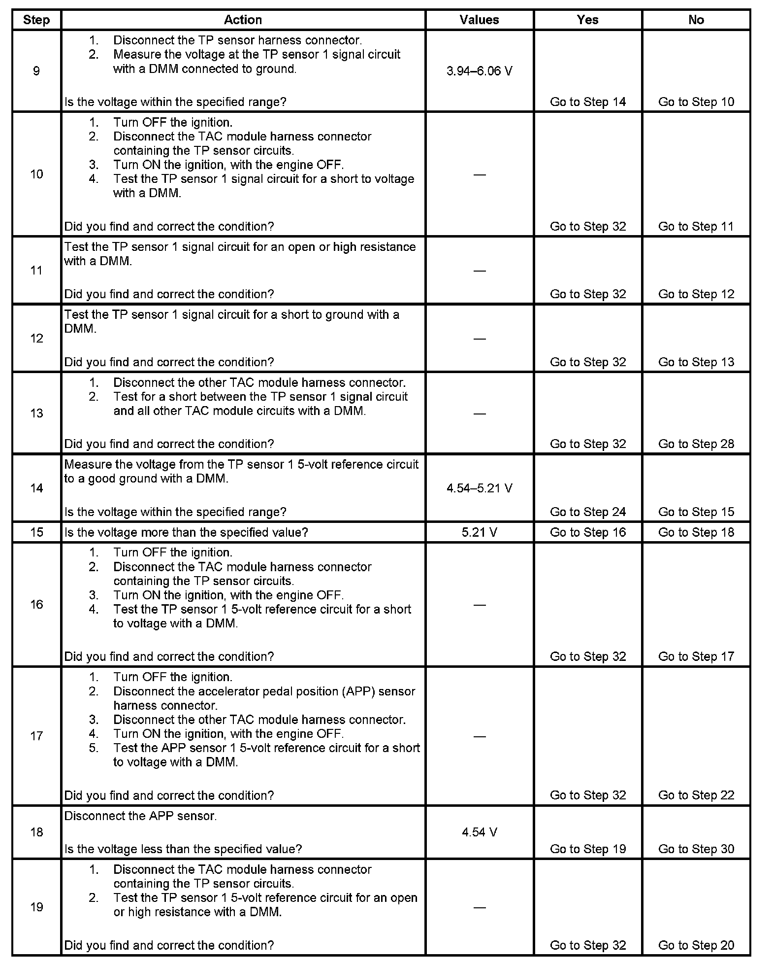 - The 5-volt reference circuit of the TP sensor 1 is less than 4.54 volts or more than 5.21 volts for more than 1 second.
