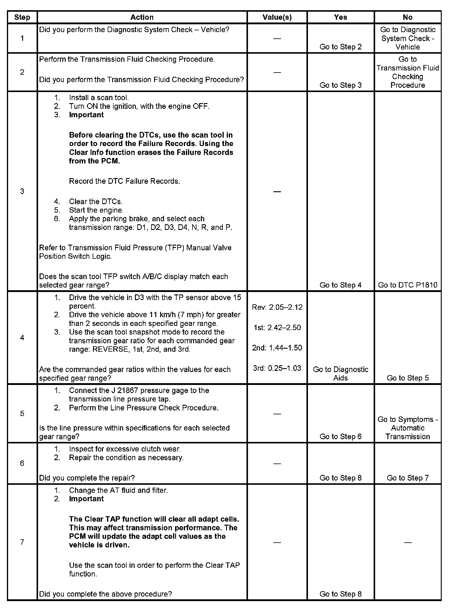 3. This step tests the indicated range signal to the actual selected range. A faulty TFP manual valve position switch could set DTC P1810.
