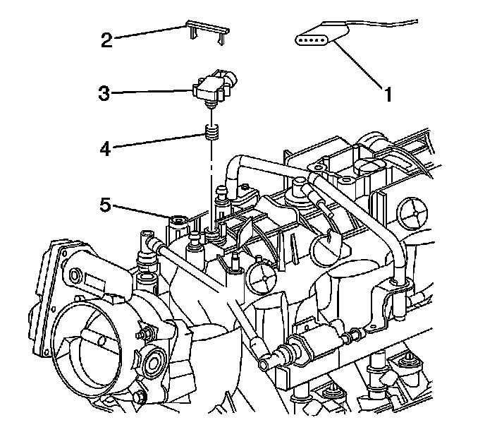 1. Install the MAP sensor (3) and the seal (4) in the intake manifold (5).