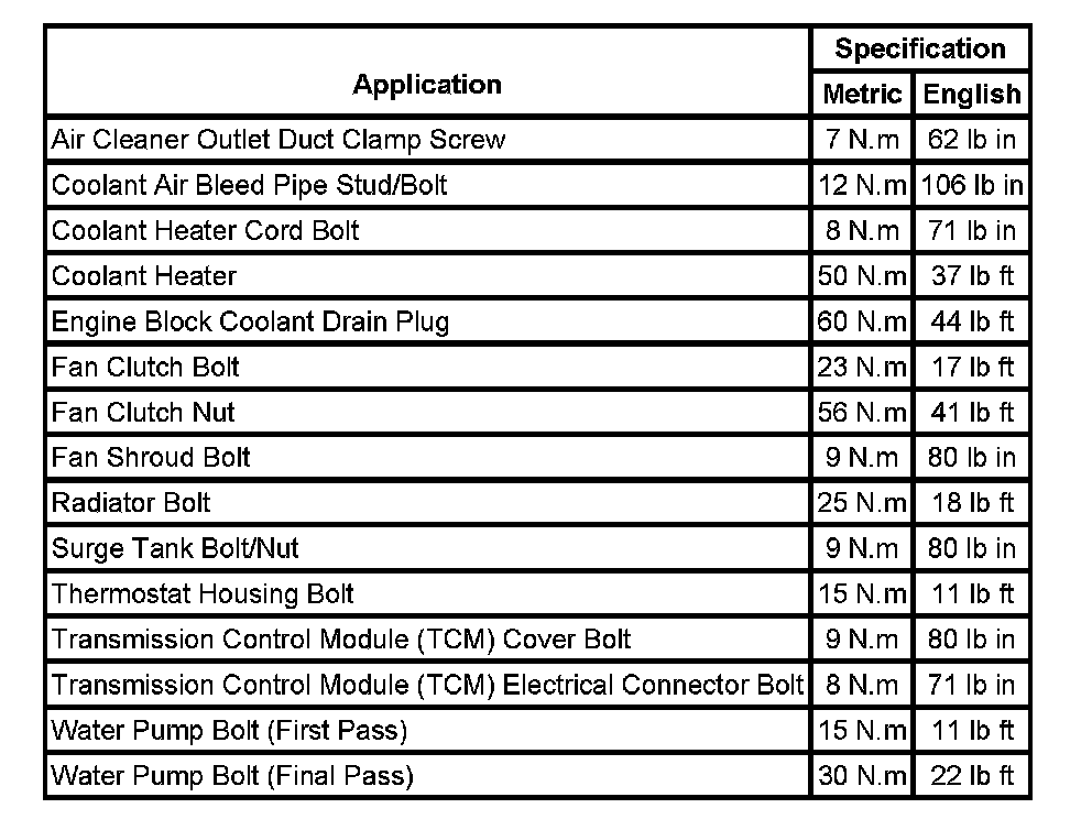 Fastener Tightening Specifications:
