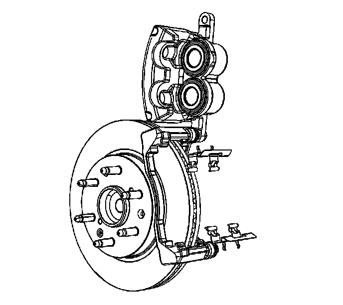 Caution: Do not depress the brake pedal with the brake rotors/calipers and/or the brake drums removed. Damage to the brake system may result. If brake system damage occurs and is not repaired, vehicle damage and/or personal injury or death may result.