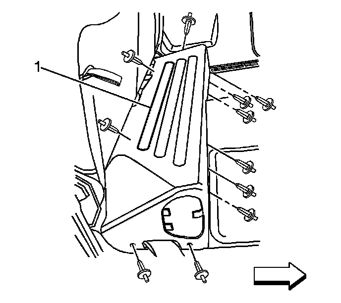 6. Remove the plastic retainers from the ESB trim cover (1).