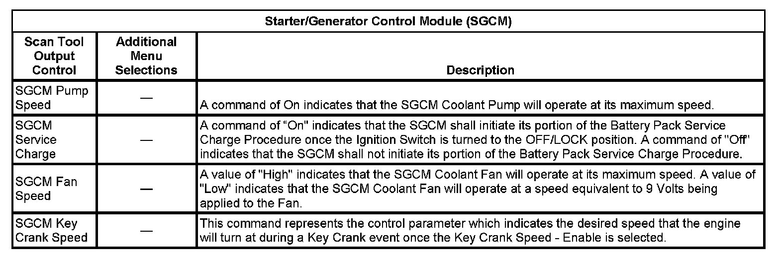 Scan Tool Output Controls