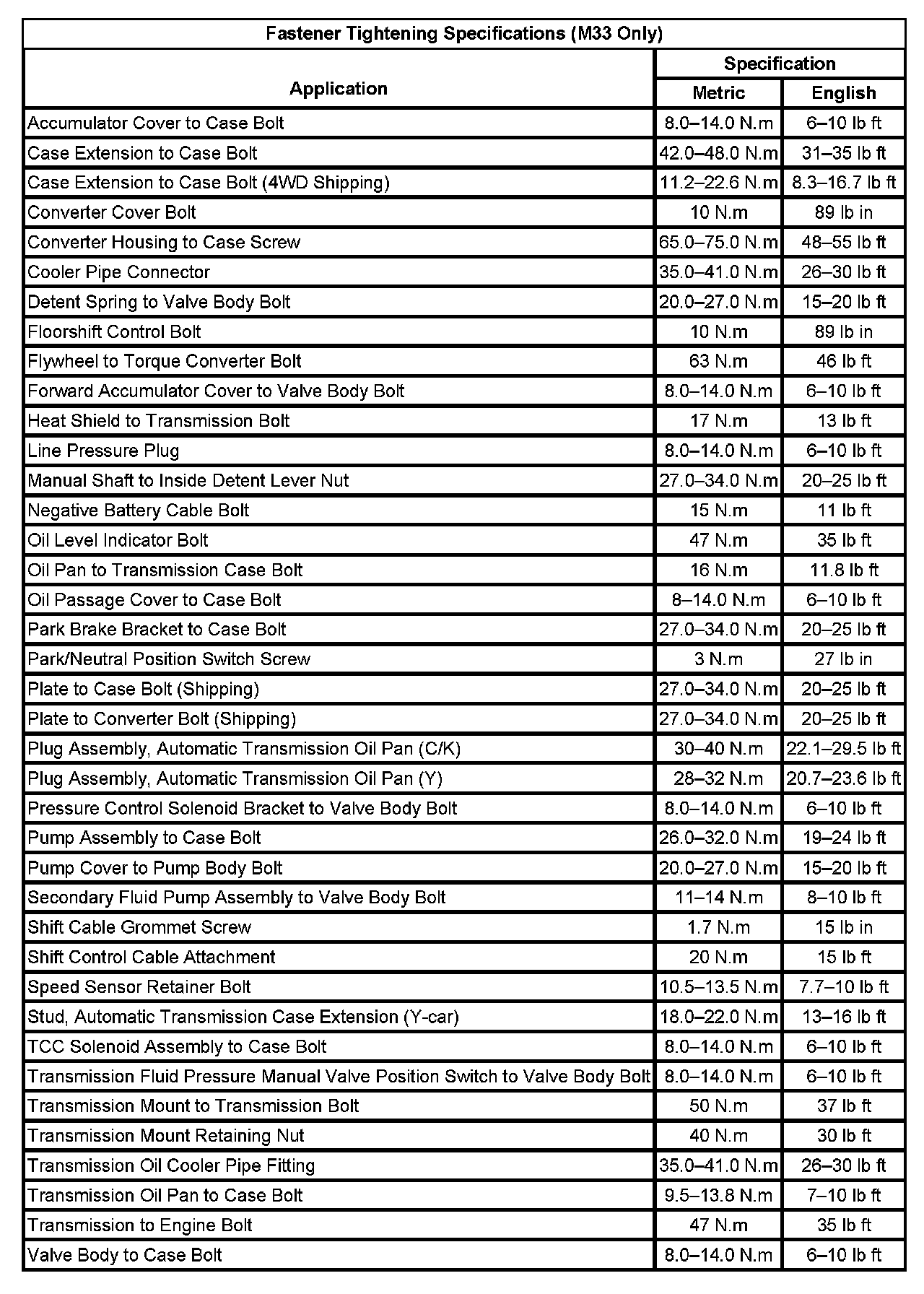 Fastener Tightening Specifications (M33 Only):