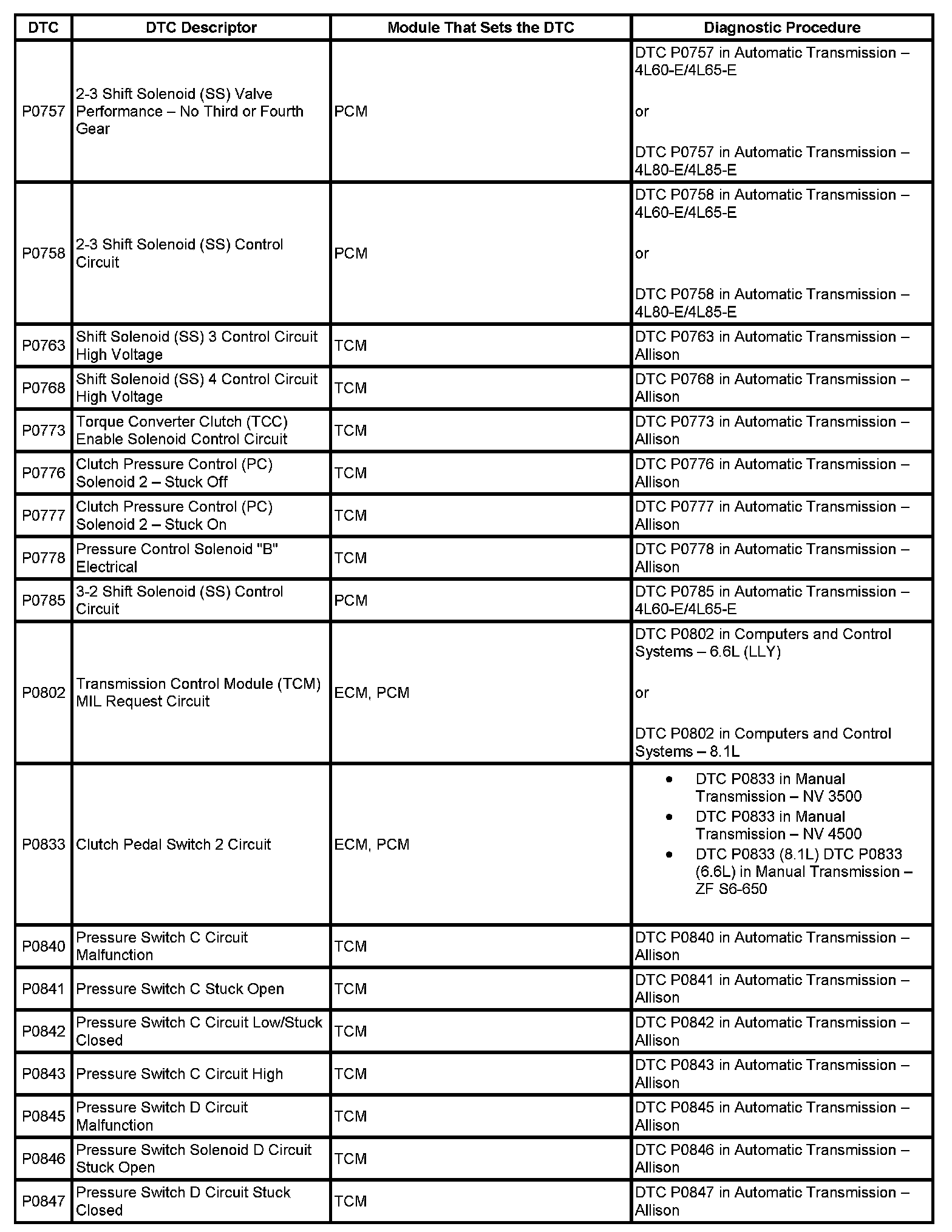 DTC's P0757-P0847: